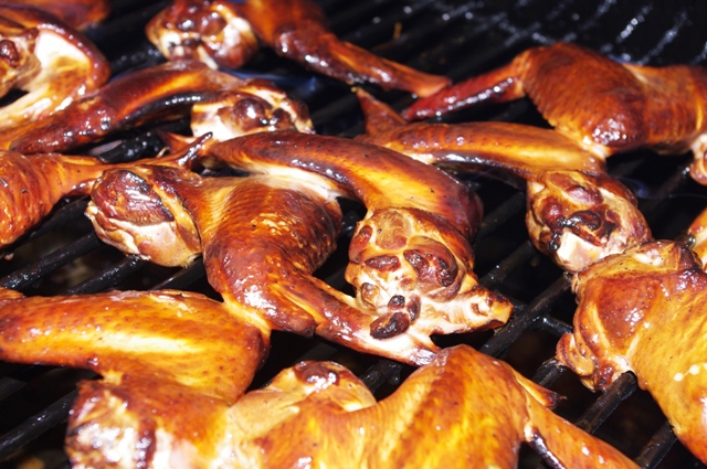Nendele anda umbes pool tundi suitsu ja siis küpsetada umbes 1,5 tundi. Iga kahekümne minuti tagant moppida.